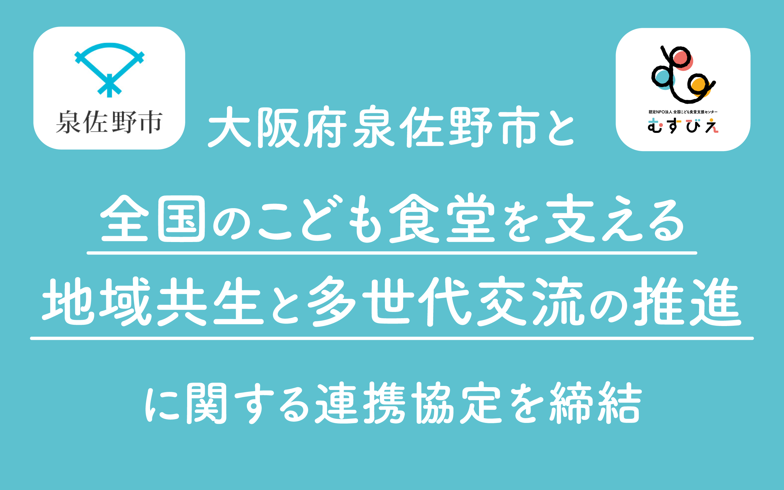 泉佐野市×認定NPO法人全国こども食堂支援センター・むすびえ 個別連携協定を締結~こども食堂の支援を通じて、地域共生と多世代交流を推進~