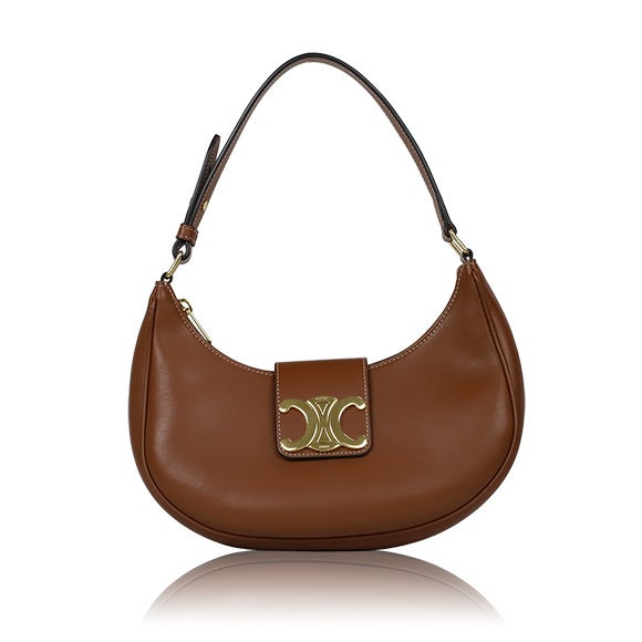 セリーヌのアイコンバッグとして愛されている「アヴァ」は、クラシカルなホーボー型(半月型)のシルエットが特徴です。2000年代のY2Kムードを彷彿とさせるレトロな雰囲気に、セリーヌらしい現代的なミニマリズムが融合した、洗練されたデザインが魅力です。ショルダーストラップは調節可能で、肩掛けでも手持ちでもスタイルに合わせてお使いいただけます。さらに、ゴールドのトリオンフモチーフがバッグ全体のアクセントとなり、上品な輝きを放ちます。