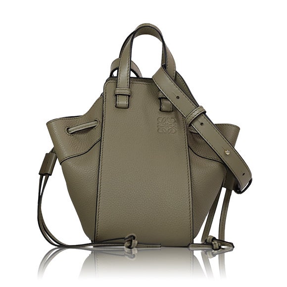 立体的なフォルムが特徴的なロエベ「ハンモックドローストリングミニ」です。柔らかく上質なカーフレザーを使用し、巾着のようなドローストリング仕様で開閉もスムーズです。カーキ寄りのグレージュは、秋らしい落ち着きと都会的な雰囲気を兼ね備えており、ハンド・ショルダー・クロスボディの3WAYで幅広く活躍します。コンパクトながら収納力も備えているので、日常からお出かけまでさまざまなシーンでご利用いただけます。