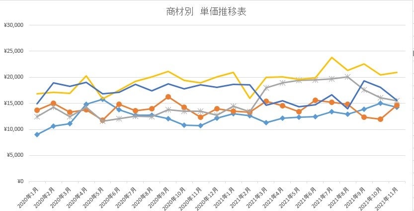 引き続き、全体的に単価は減少した。法人の出社率も高まりつつあり、個人向けのチェアの販売量は緊急事態宣言解除以降から若干減少したことと、緊急事態宣言解除後のオフィス使用の変化から大型のフリーアドレスデスクやテーブル等の需要が減少していることから、商品単価の低下傾向は継続している。しかし、全体的な法人向けの商品需要量は増加傾向にあり、徐々に良い傾向に変化する兆候が見えてきている。12月は久しぶりに東京都5区にて空室率は一旦減少したものの、オフィス入居への慎重な判断はまだ継続しているため、大きく需要が増加する可能性は未だ低い。今後はオミクロン株の影響による先行き等にも注視していく。