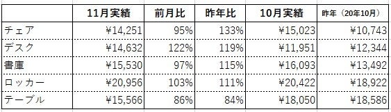 オフィスバスターズが、独自にまとめた’21年11月度の「中古オフィス家具指数」を発表します。 (全国2021年12月-02)