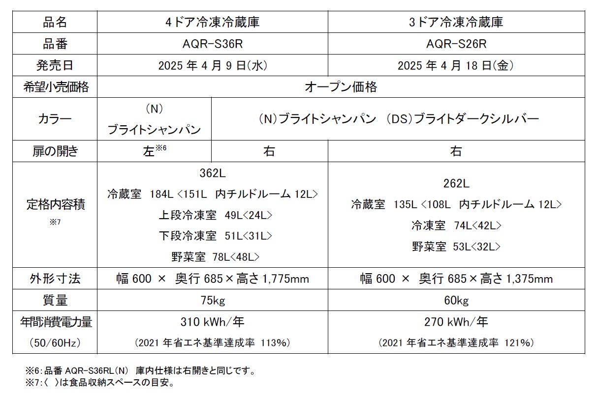 アクア株式会社(本社:東京都中央区、代表取締役社長 兼 CEO:杜 鏡国)は、新たに自動製氷機能を搭載した冷凍冷蔵庫「FREEZIA+(フリージア・プラス)」シリーズの2025年モデル(品番:AQR‐S36R、AQR‐S26R)を、2025年4月9日(水)より順次発売いたします。
