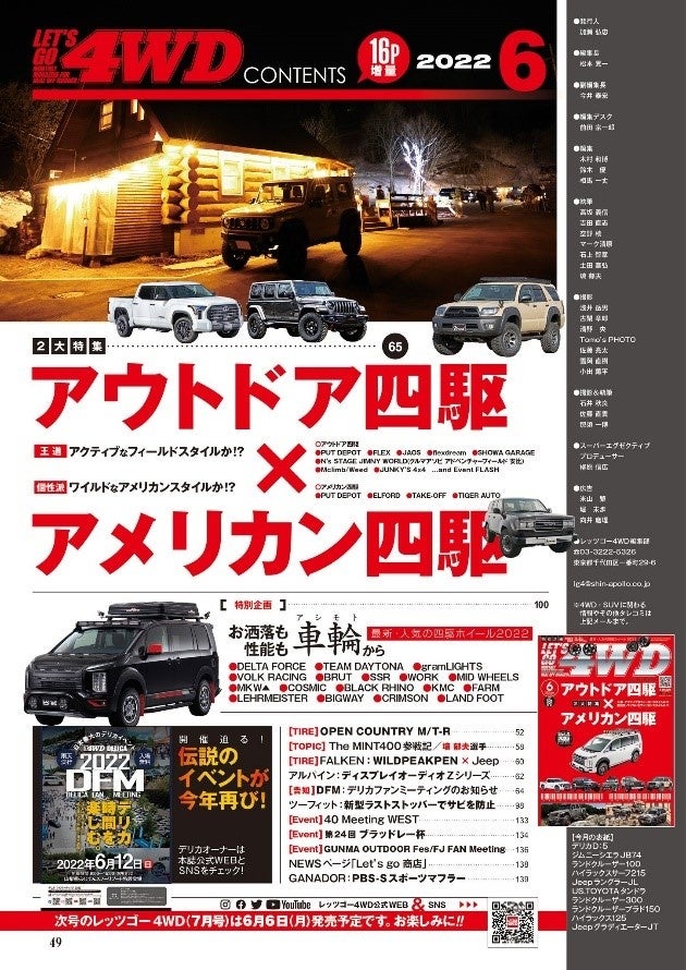 四駆界の王道vs個性派が激突! 16ページ増量で贈る「アウトドア四駆×アメリカン四駆」の2大特集!! レッツゴー4WD6月号は2022年5月6日(金)発売!