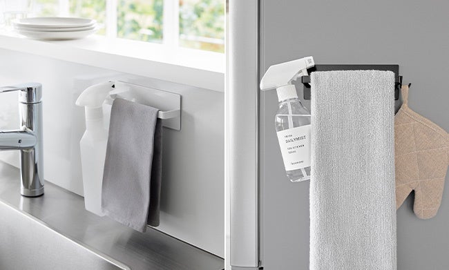 浮かせて収納できて、キッチンや洗面所まわりのお手入れに便利です。
