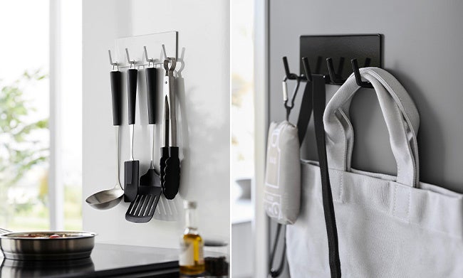お玉やフライ返しなど、調理中によく使用するキッチンツールを吊るして収納できます。