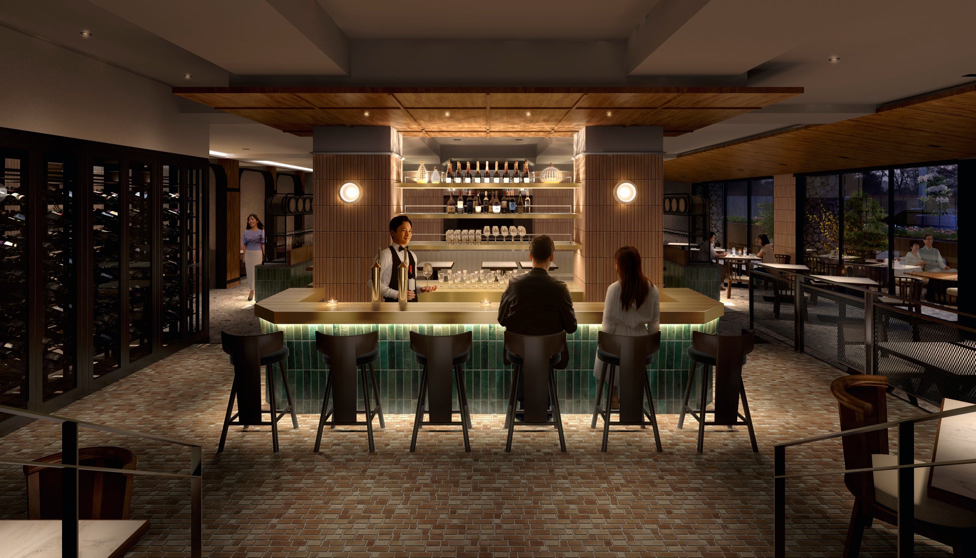 ディナータイムには、あたたかなランプの灯りのもと、コース料理とともにワインやカクテルを愉しむ特別なひとときをお過ごしください。