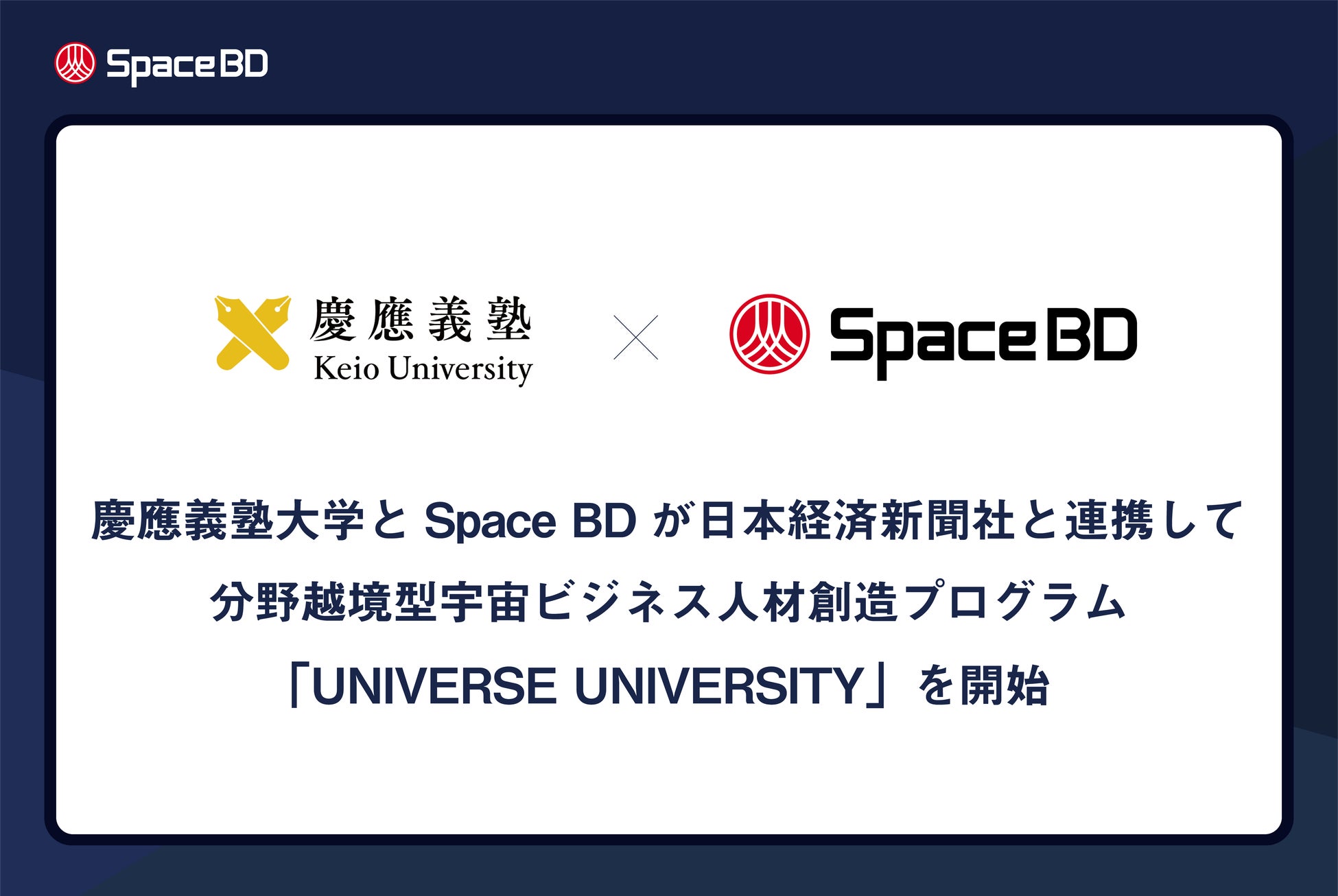 慶應義塾大学大学院システムデザイン・マネジメント研究科(神奈川県横浜市、研究科委員長:白坂成功)とSpace BD株式会社(本社:東京都中央区、代表取締役社長:永崎将利)は、株式会社日本経済新聞社(本社:東京都千代田区、代表取締役社長:長谷部剛)と連携し、株式会社ベネッセコーポレーション(本社:岡山県岡山市、代表取締役会長兼社長:岩瀬大輔)の協力を得て「理論と実践による学びと成長を実現する分野越境型宇宙ビジネス人材創造プログラム:UNIVERSE UNIVERSITY(※)プログラム」を開始しました。(※ユニバースユニバーシティ)
