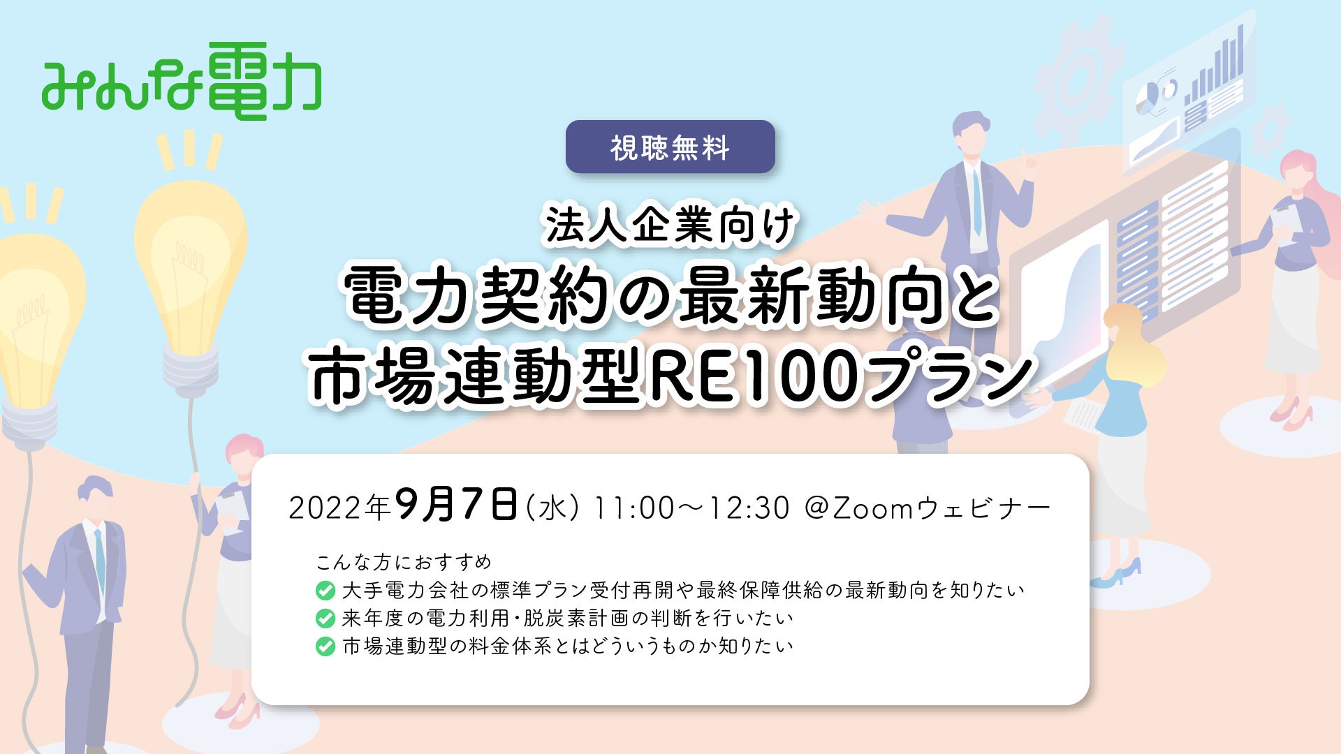 <みんな電力 視聴無料Zoomウェビナー開催>法人向け電力契約の最新動向と市場連動型RE100プラン