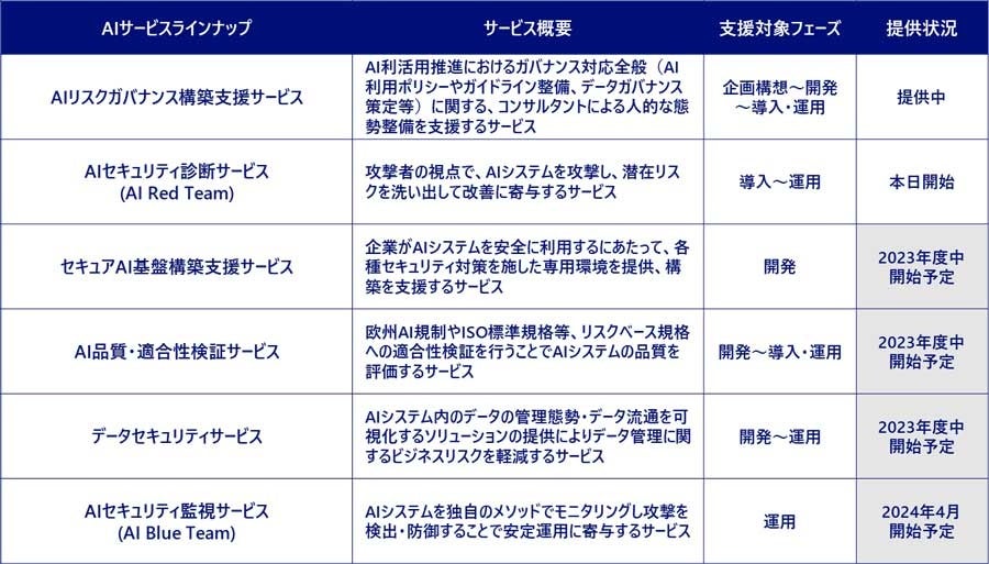 NRIセキュアが提供するAIセキュリティ関連サービスについては、以下のWebサイトおよび一覧表をご参照ください。