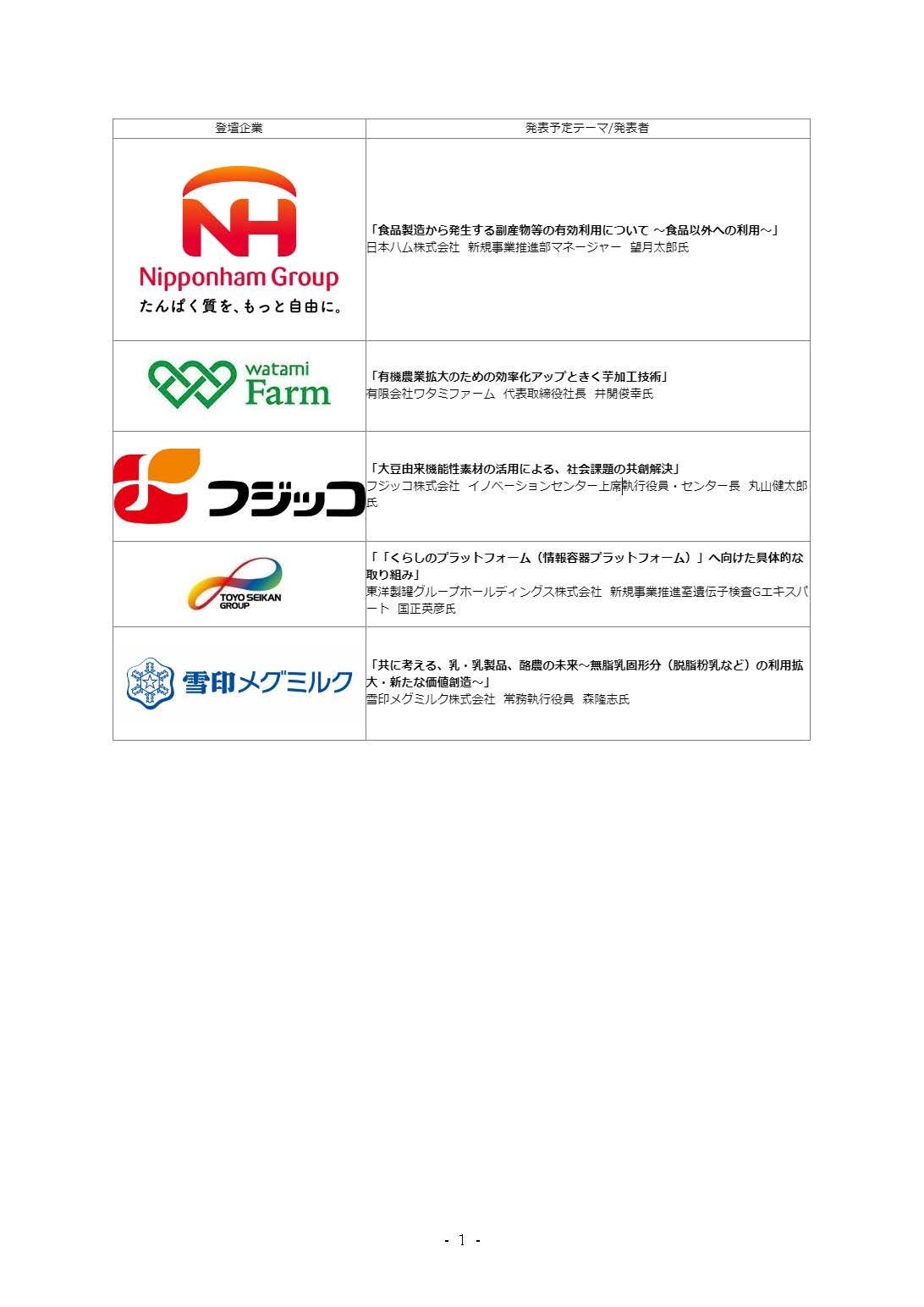 登壇企業及び発表予定テーマ一覧