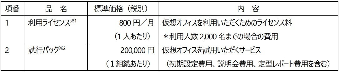 利用条件や提供価格の詳細はお問い合わせ先までご連絡ください。
