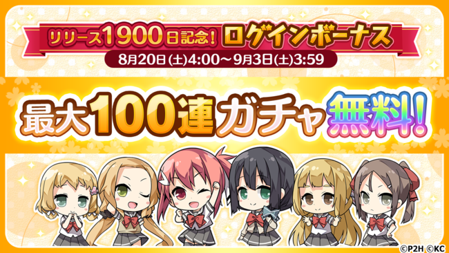 アプリリリース1900日を記念して最大100連分のガチャチケットが手に入るログインボーナスを開催!