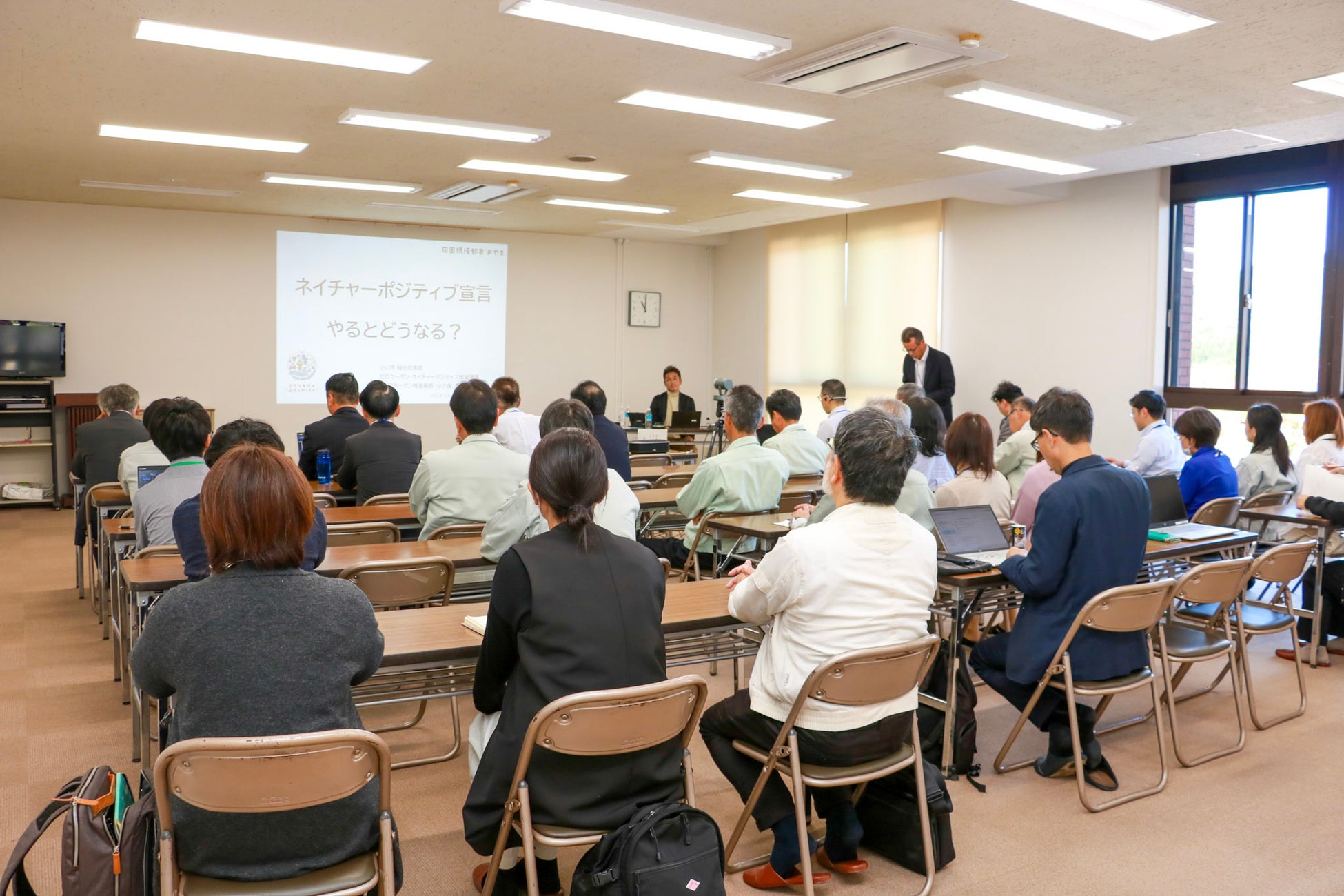 また、宣言に併せて先進地から講師を招き、ネイチャーポジティブに関する職員研修会を開催し、ネイチャーポジティブの取り組みについて理解を深めました。