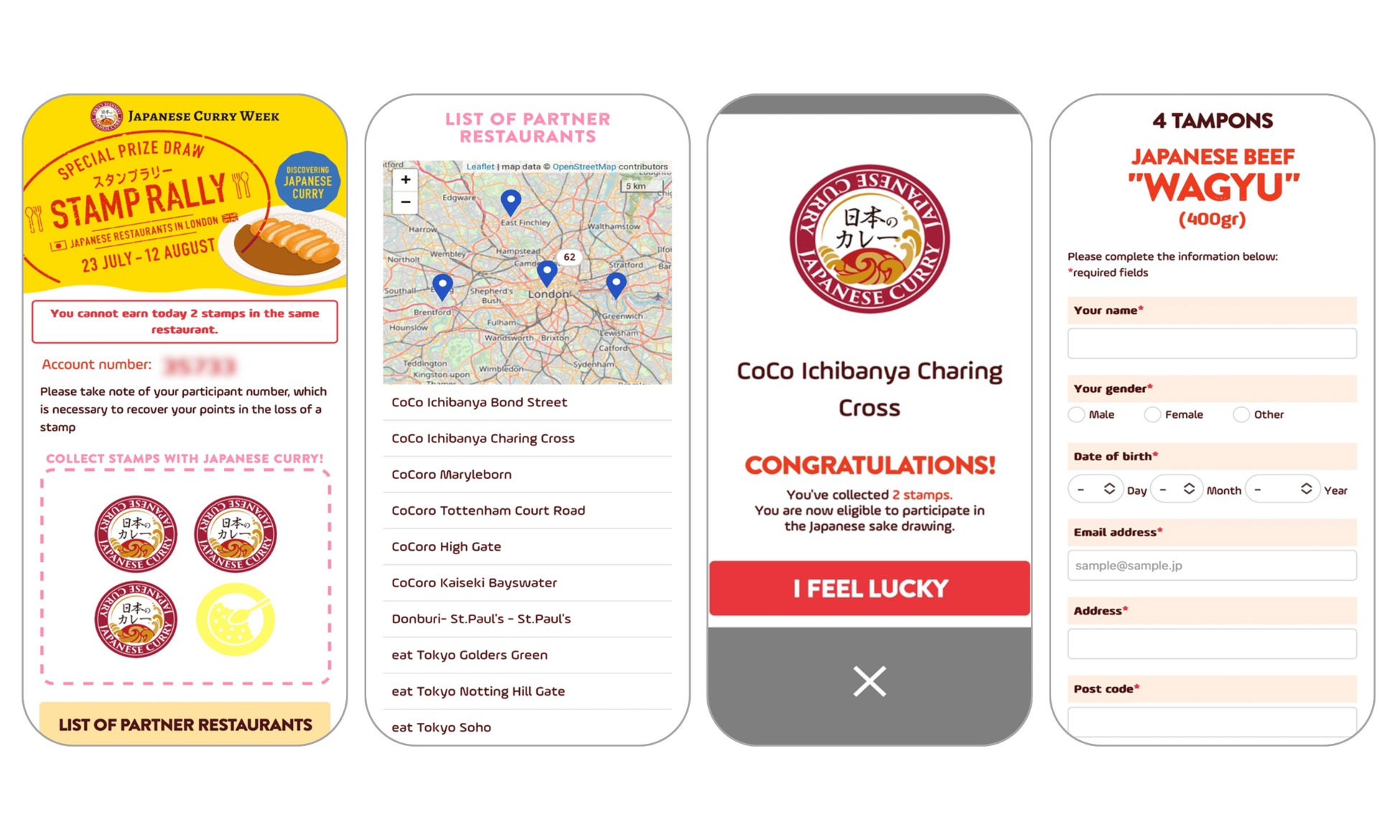 1回目のデジタルスタンプラリーは、日本のカレーを提供しているレストランに協力いただき、2年前に40店舗の規模で実施しました。ロンドンの方は、スタンプラリーを知りませんでしたが、初めてでもとても楽しんでくれました。