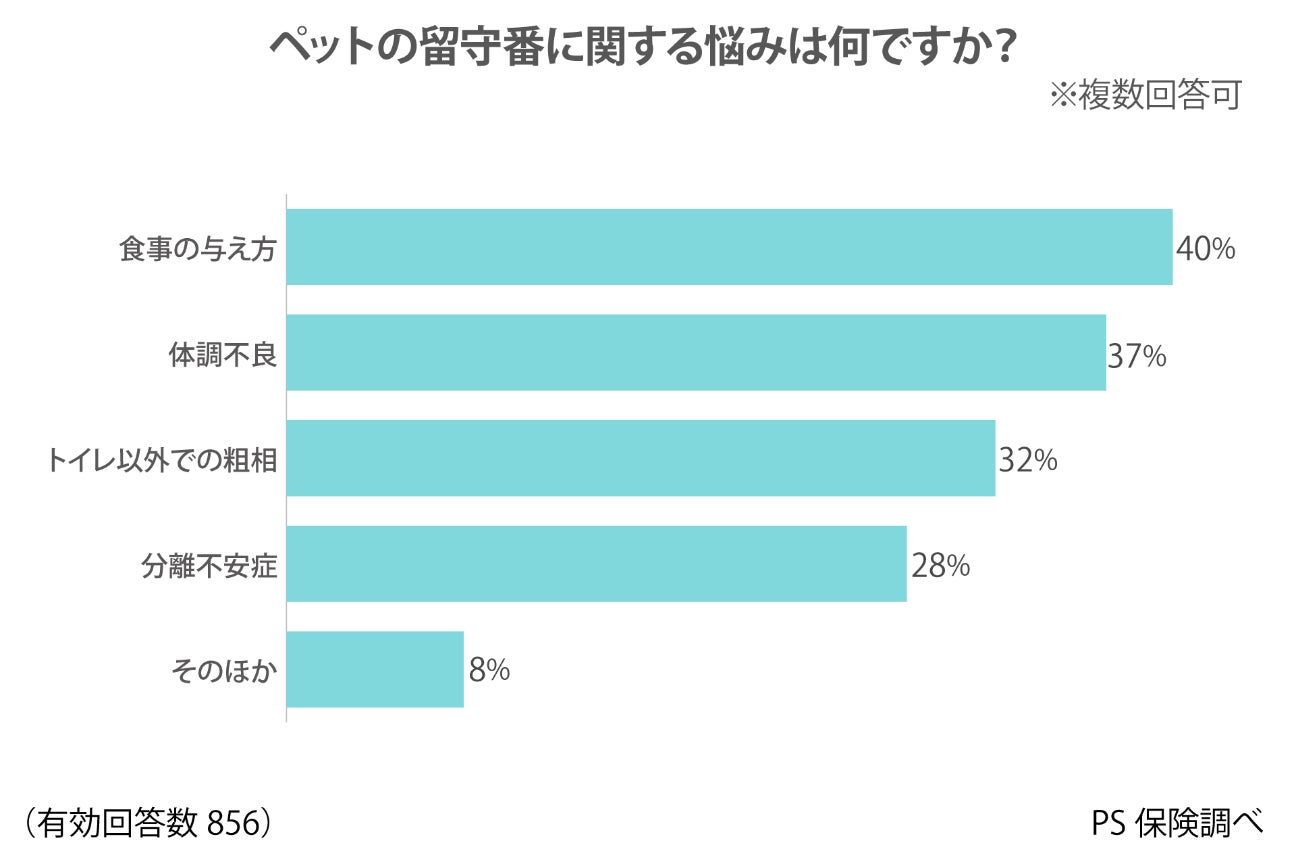 ペットの留守番に関する悩みは「食事の与え方」が最多(40%)。