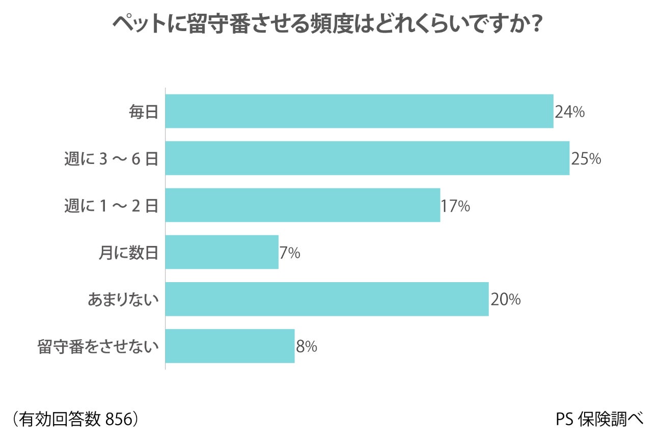 今回、犬や猫を飼っている人を対象に行ったアンケート調査では、ペットに留守番させる頻度は「週3~6日」が最も多く、全体の25%を占める結果となりました。また、「毎日」と回答した飼い主は24%で、合計すると半分弱の飼い主がペットに週3日以上の留守番をさせていることがわかりました。
