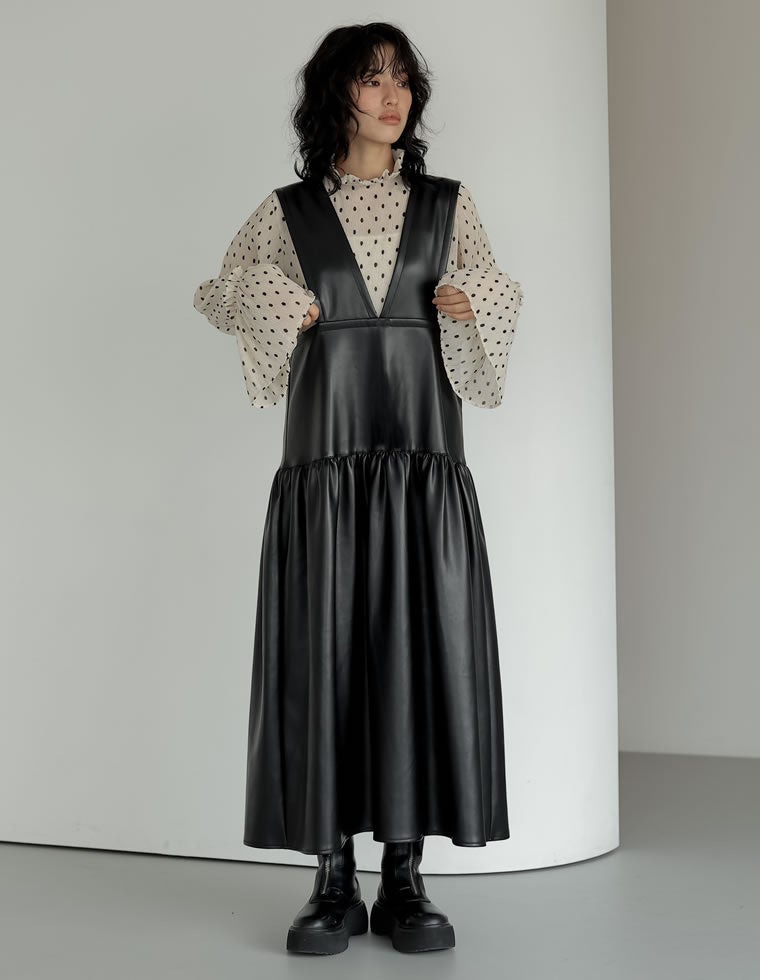 前後2WAYギャザー切り替えフェイクレザージャンパースカート