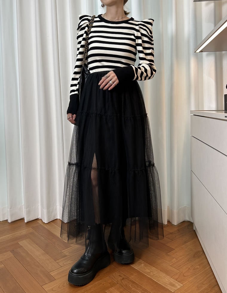 2WAYペチコート付きティアードフリルチュールボリュームスカート