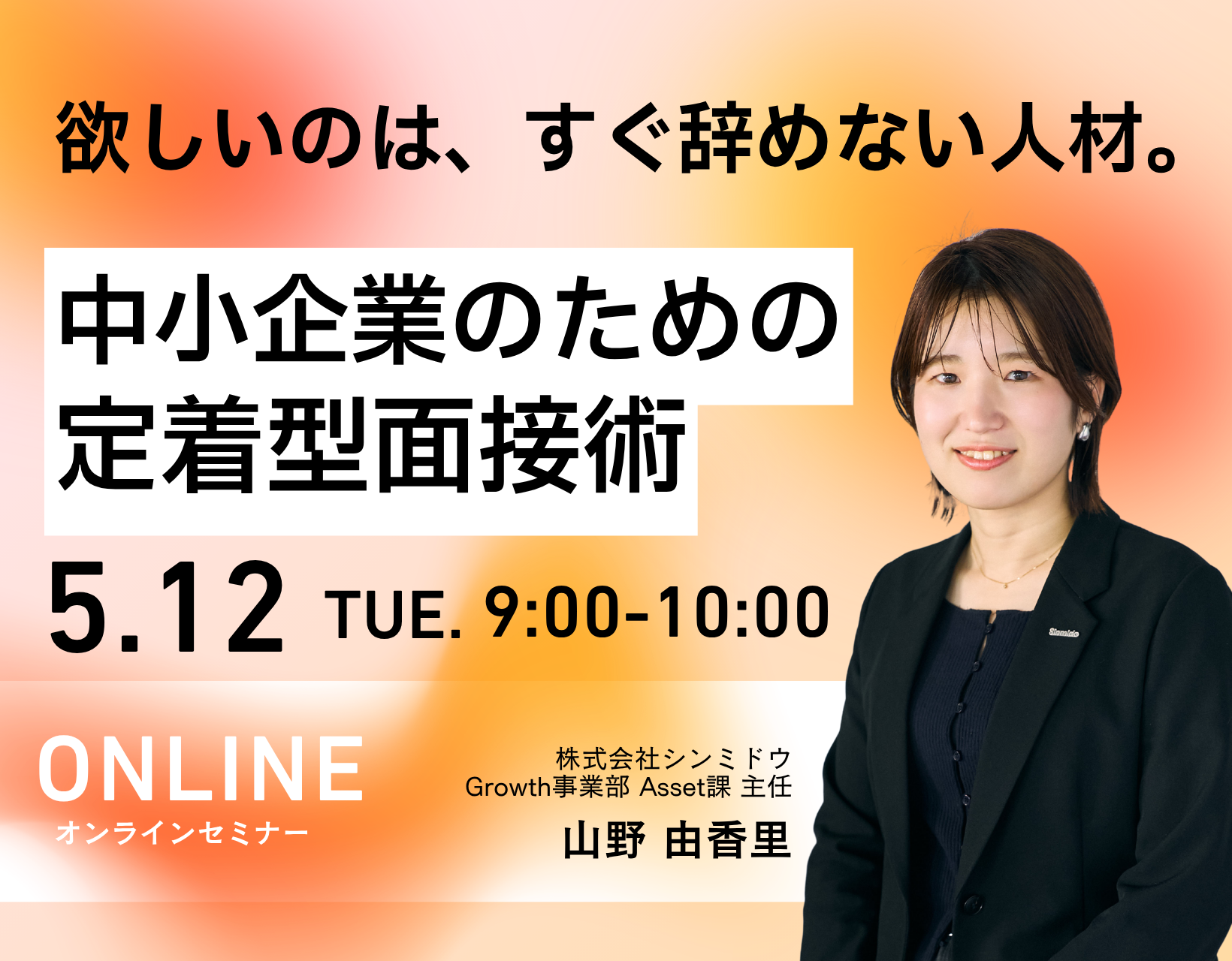 株式会社シンミドウ(本社:埼玉県さいたま市、代表取締役:笹田知弘)は、2026年5月12日(火)に、『中小企業のための定着型面接術ウェビナー』を開催します。