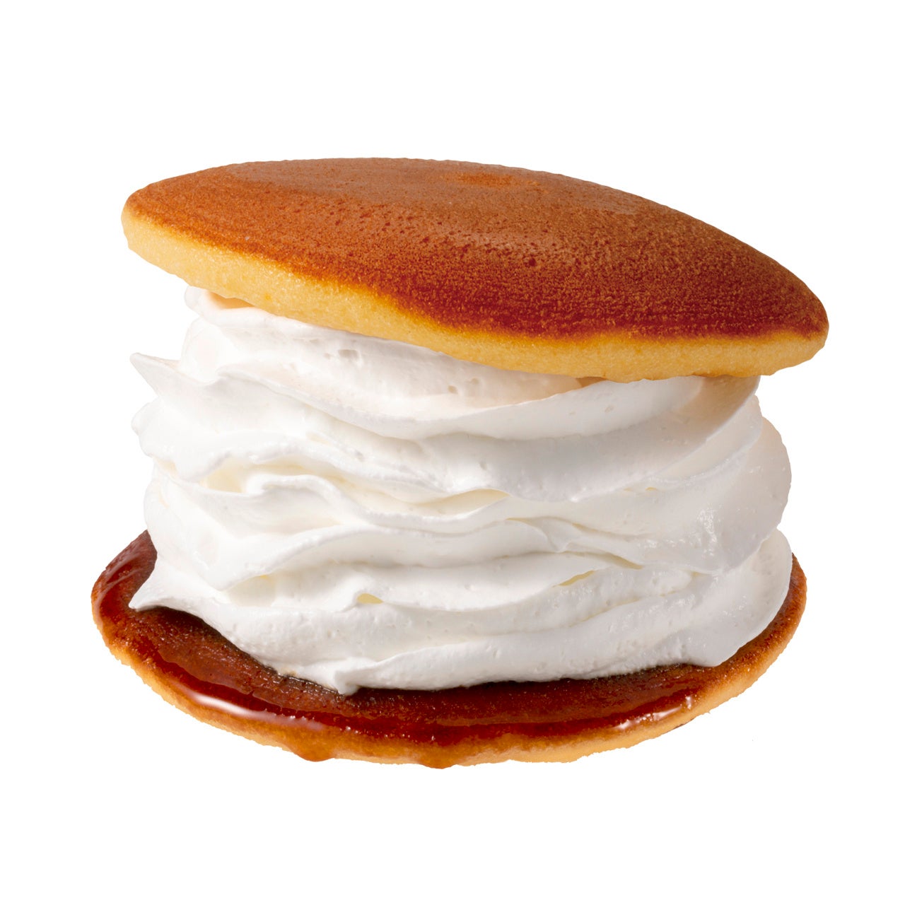 程よい甘さのどら焼き生地に、「榮太樓」こだわりのコク深い黒みつをたっぷりと染み込ませ、軽い口当たりのホイップクリームをサンドしました。