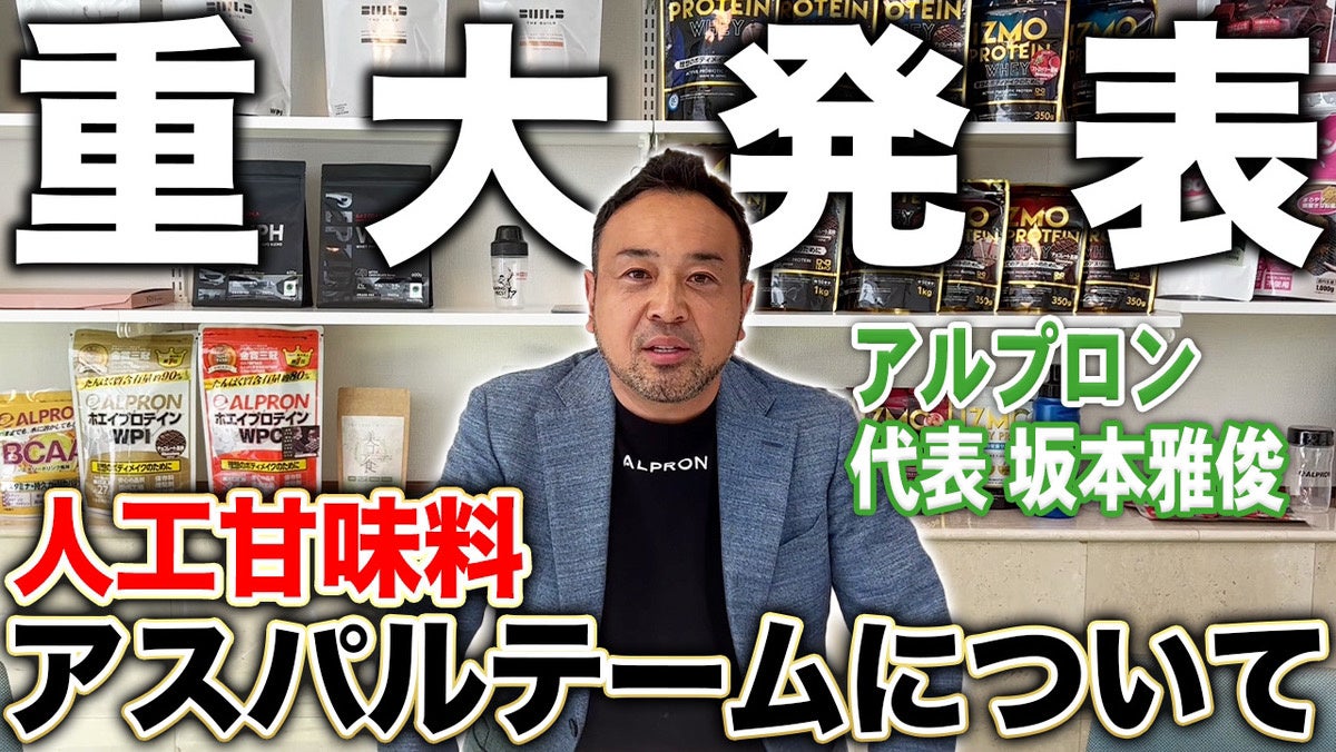 プロテイン・スポーツ栄養食品メーカーの株式会社アルプロン(本店:島根県雲南市、 代表取締役 坂本雅俊)は、人工甘味料「アスパルテーム」についての見解、今後の当社の方針を発表しました。