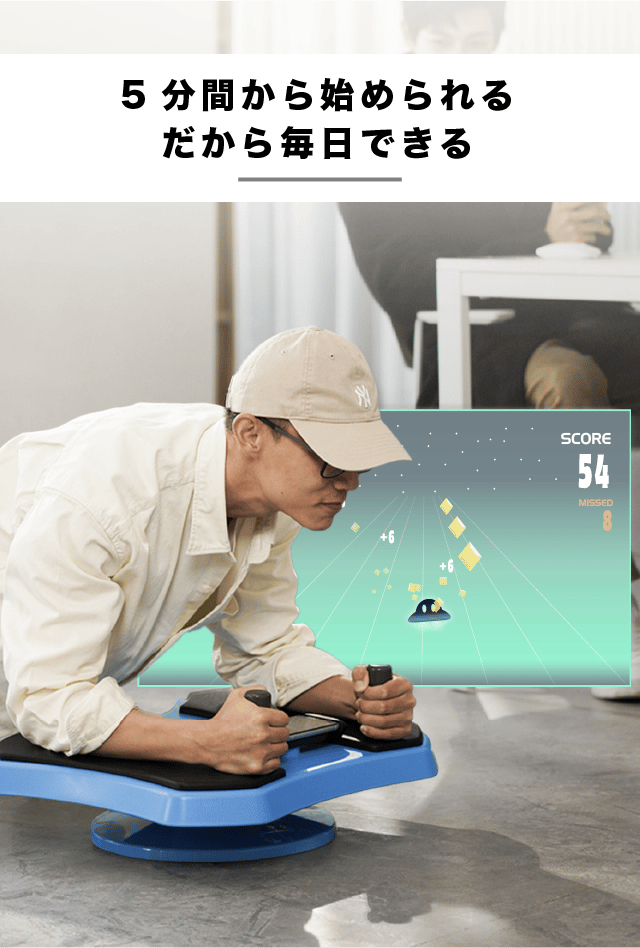 アプリのゲームと組み合わせることで予測不能な負荷が発生し、無意識に体幹が使われます。