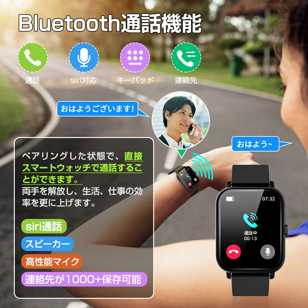 スマートウォッチとスマホのアプリがペアリングすることで、電話着信、メッセージ、LINEなどの通知を振動でお知らせします。