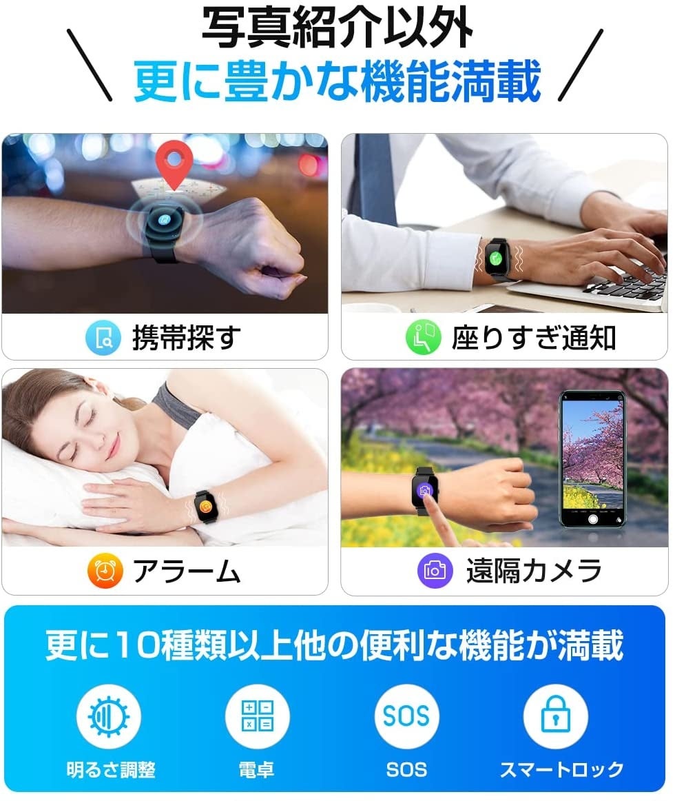 また、スマホ探し、録音、電卓、パスワードロック、SOS緊急ダイヤル、カメラ制御、天気予報、ゲーム、アラームなど充実した機能が盛り沢山です。