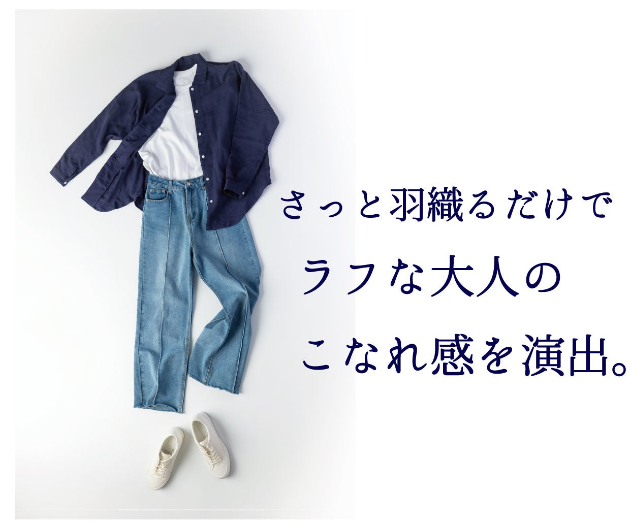 ③ベーシックなオーバーサイズシャツは着回し抜群!