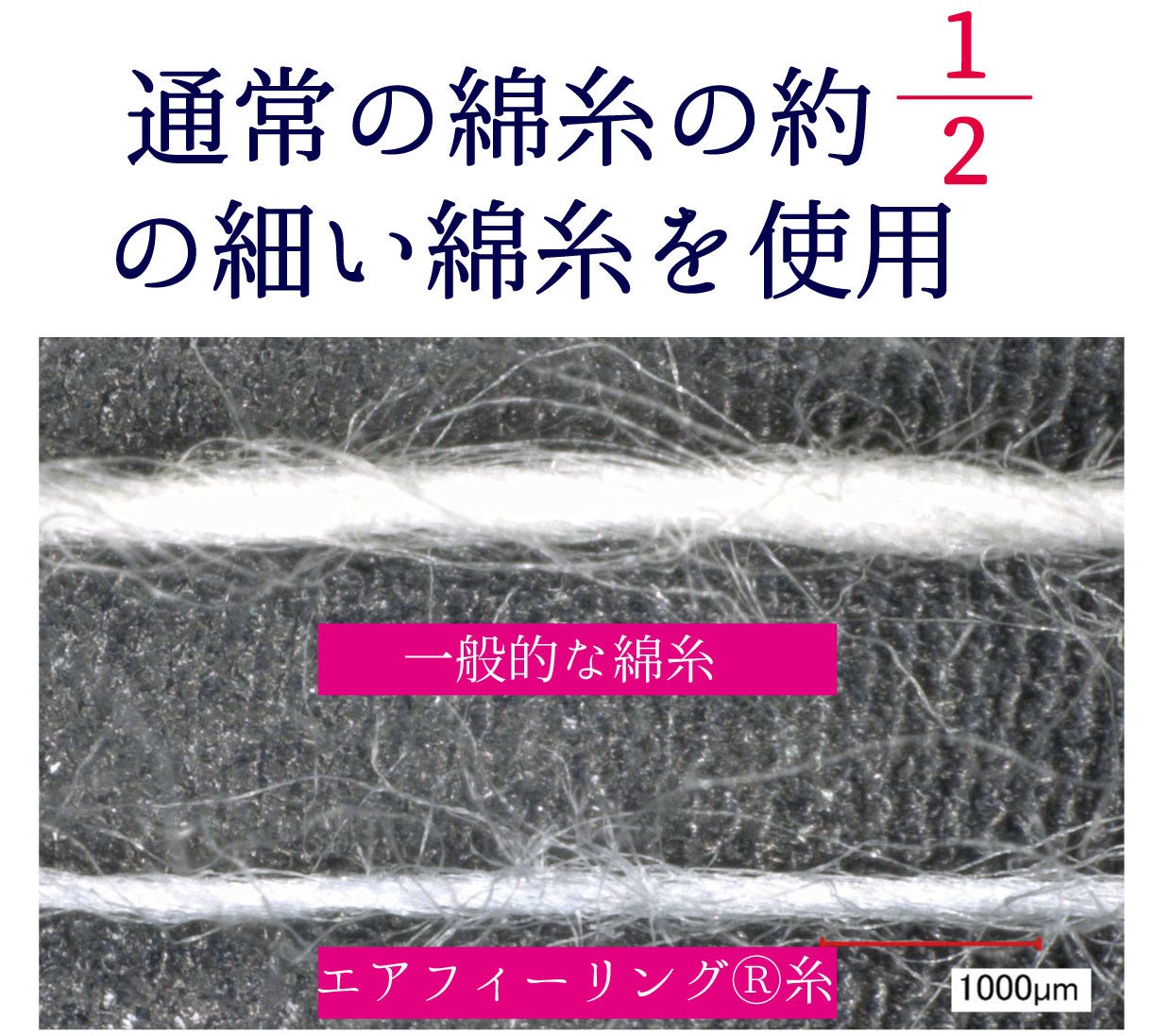 エアフィーリングⓇ糸をきめ細かく織り上げ、空気をたっぷり含んでふわっと仕上げました。