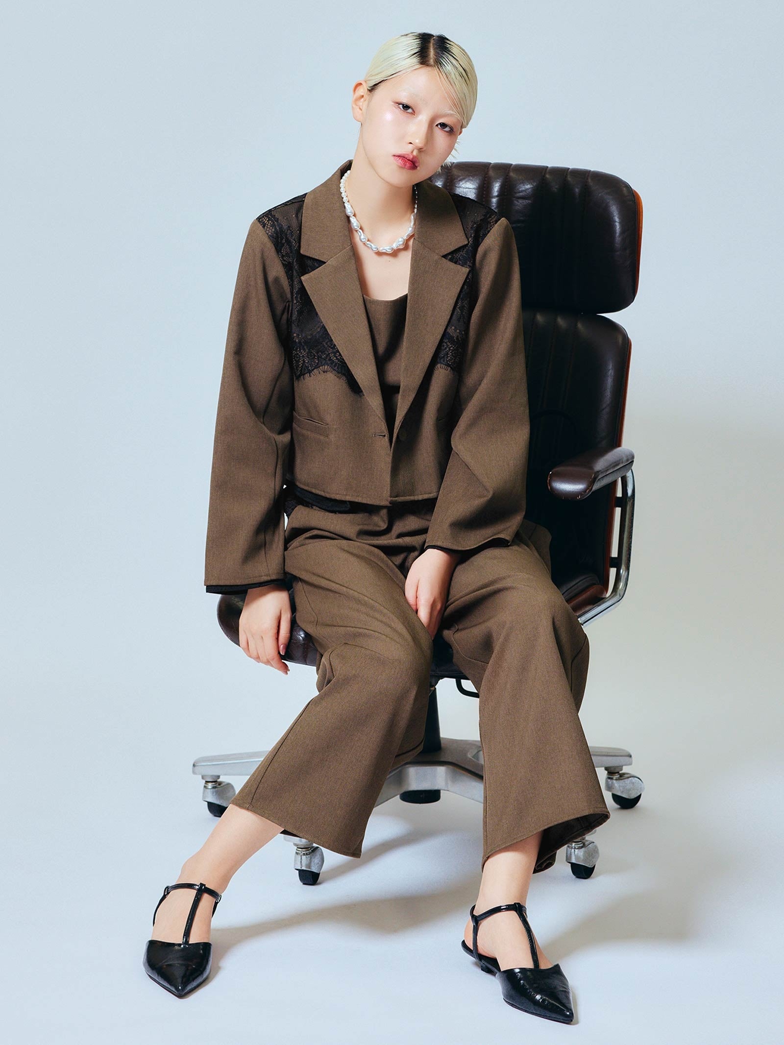 ボレロはショート丈に設定し、野暮ったく見せないシルエットづくりにこだわりました。
