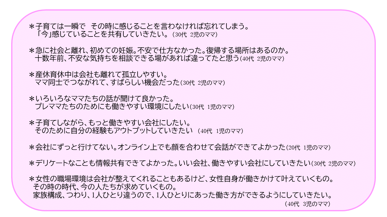▶〈ハピネスmamaの会に参加したママたちの感想〉
