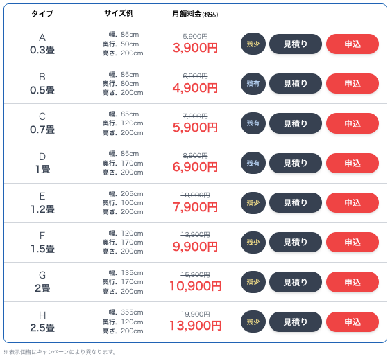 荷物以上に大きな部屋を借りてしまうことや、狭すぎて荷物が入らなかったなんていうトラブルを回避できます。