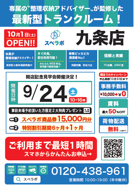 当社の大人気トランクルーム【スペラボ】は、新築で清潔感があり、地域最安値、専属の整理収納アドバイザー監修店舗。大変利用しやすいとご評価頂いております!136店舗(開業予定含む)3500室超を運営中!!