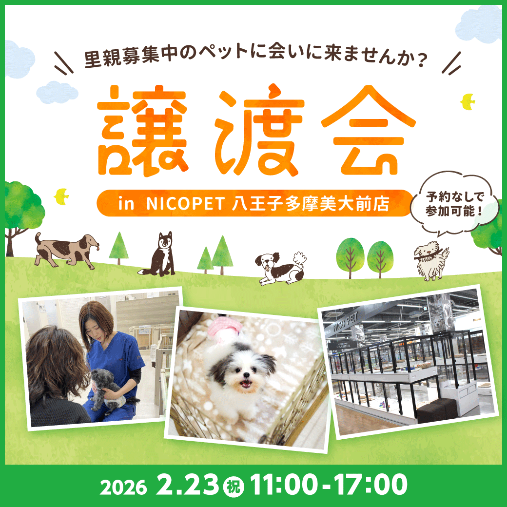 2026年2月23日(祝)ペッツファーストグループ譲渡会 開催のお知らせ in NICO PET八王子多摩美大前店