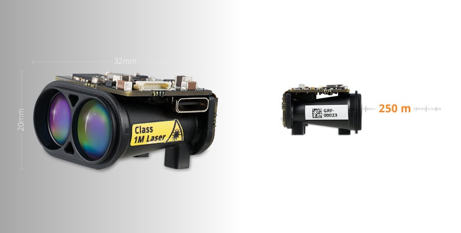 GRF-250は、昨年発売された最新モデルで、最長250mの測定が可能です。EO/IRジンバルカメラシステムに中距離の距離測定機能を追加することでカメラの機能を向上させ、対象物の正確な距離特定とカメラのフォーカス調整を実現します。