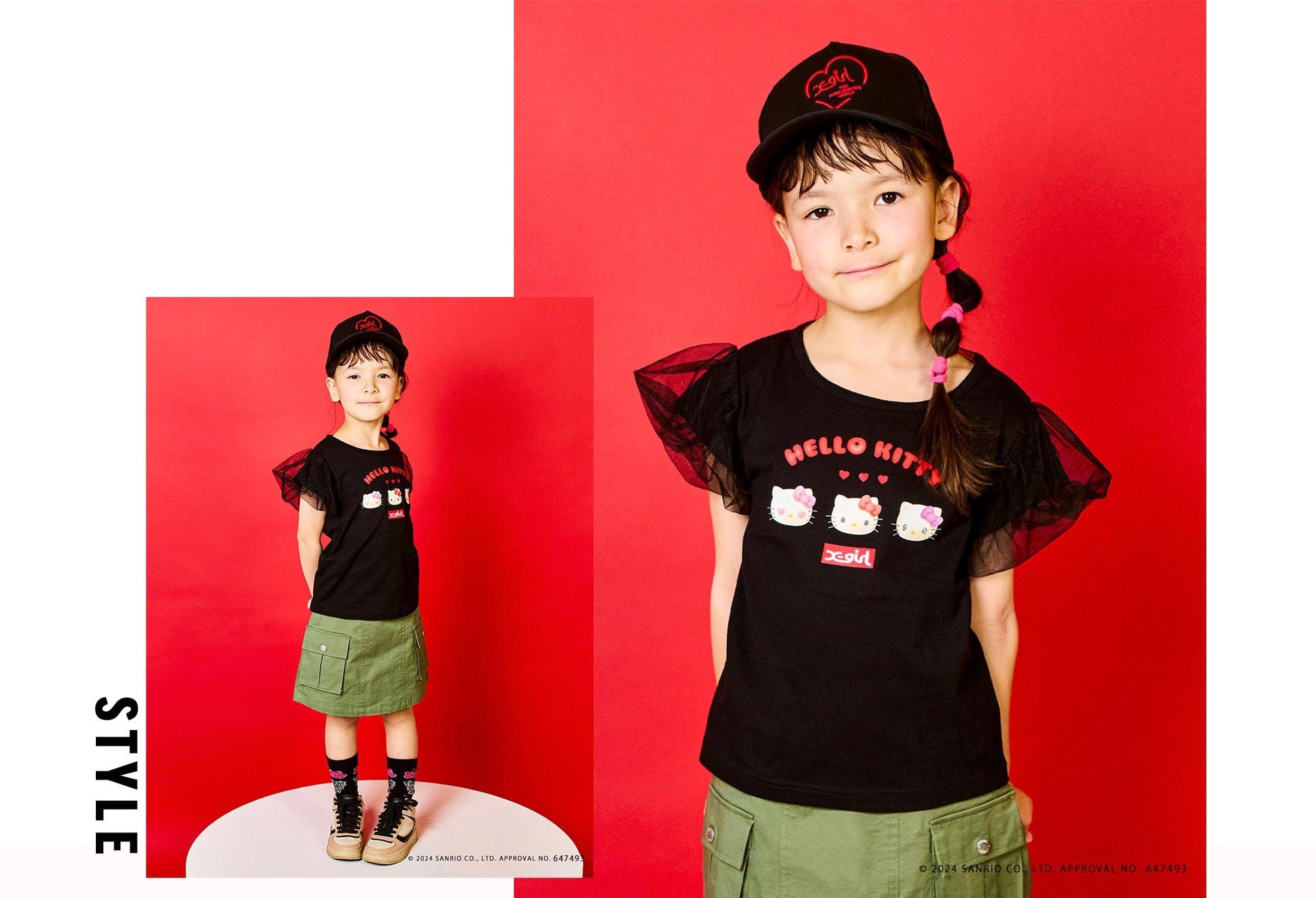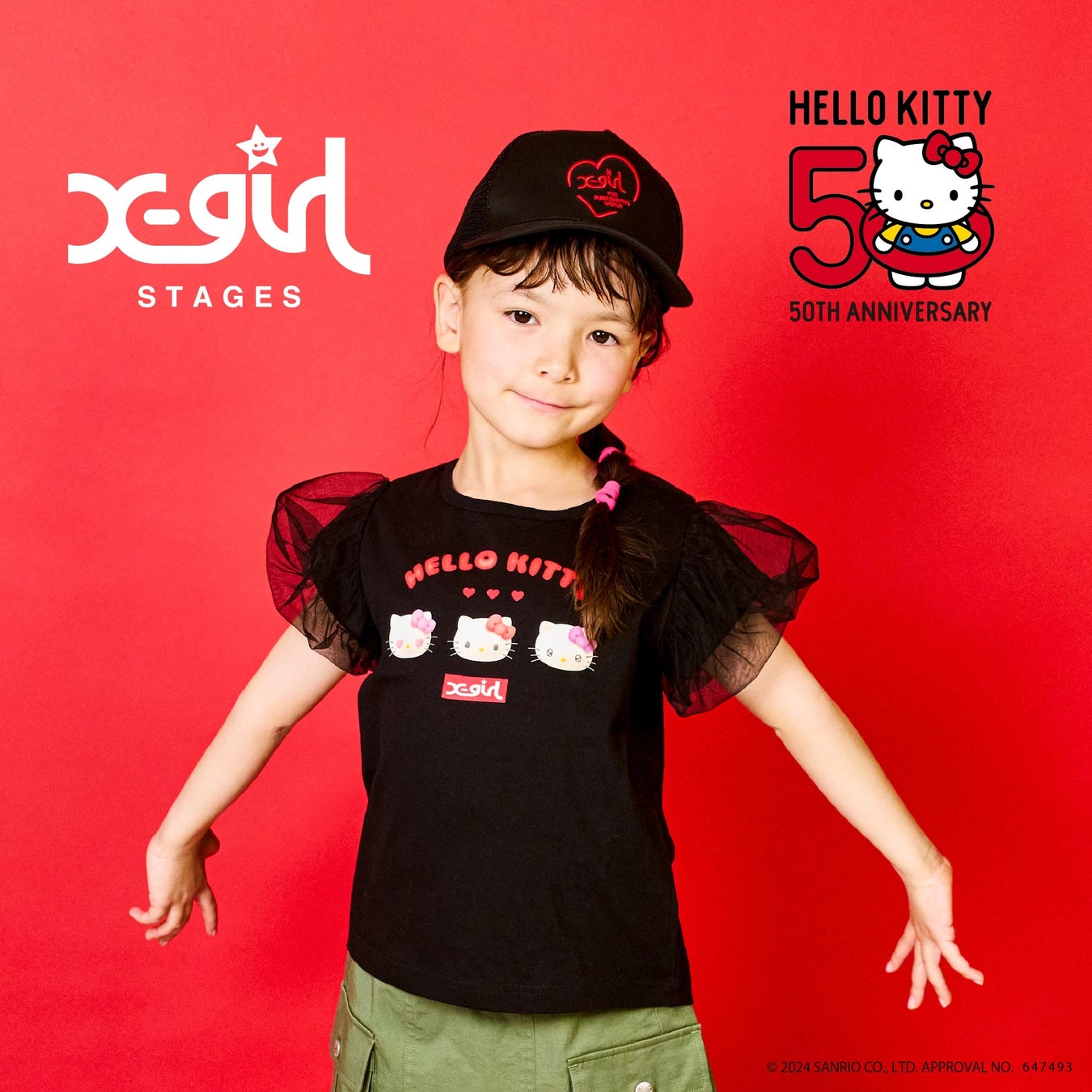 X-girl Stages(エックスガールステージス)より、50周年を迎えた ハローキティとのスペシャルアイテムが2024年2月3日(土)より全国の直営店、ナルミヤオンラインにて発売!