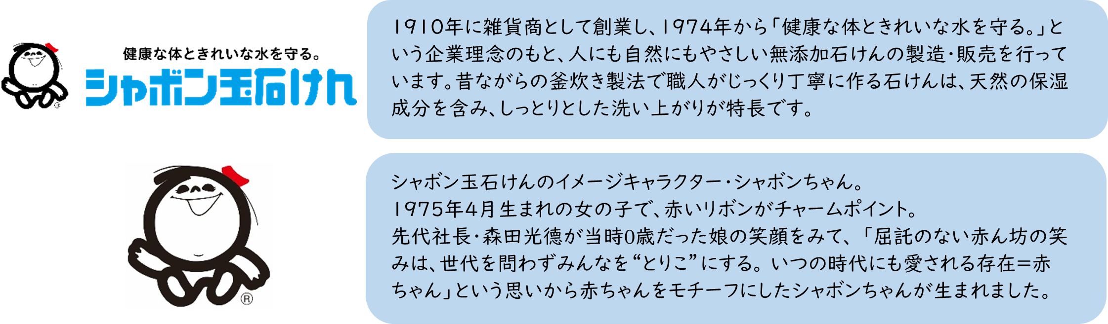 シャボン玉石けん株式会社は、は1974年に主力事業であった合成洗剤の製造・販売を中止し、無添加石けんの専業メーカーへと転換いたしました。転換当初、無添加石けんは市場に浸透せず、売上高は100分の1以下に、従業員は100名から5名へと急減。その後17年間にわたり赤字経営が続きましたが、一貫して「健康な体ときれいな水を守る。」という企業理念を堅持し、無添加石けんの供給を継続してまいりました。
