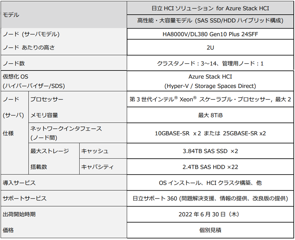- 「日立 HCI ソリューションfor Azure Stack HCI」の仕様