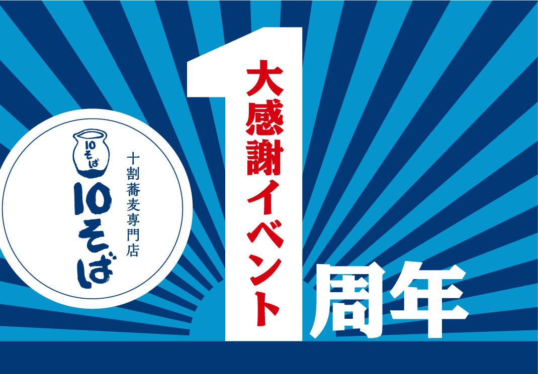 この1年間10そばを支えてくださったみなさまに感謝を込めて、このたび6月8日(木)~10日(土)の3日間、1周年イベントを開催いたします!