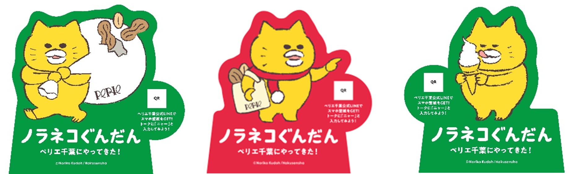 ・内容:期間中、ペリエ千葉公式LINEに友だち追加いただき、トーク画面にキーワード「ニャーニャー」を入力すると「ノラネコぐんだん」オリジナル壁紙を無料でプレゼントします