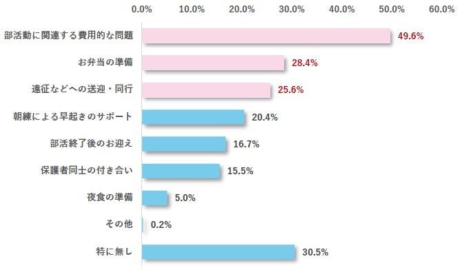 保護者の部活動サポート、一番大変に感じているのは「部活動に関連する費用的な問題」