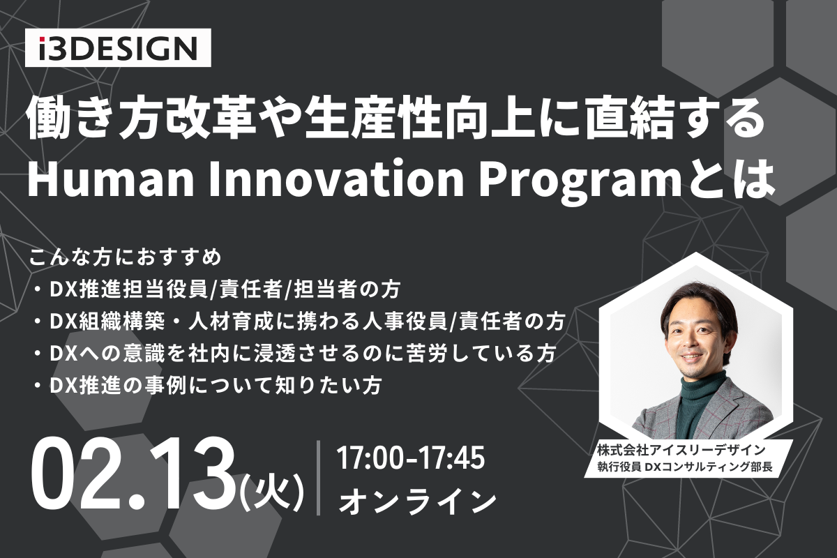 【2/13(火)17時から開催】「働き方改革や生産性向上に直結するHuman Innovation Programとは?」をテーマにオンラインセミナー開催