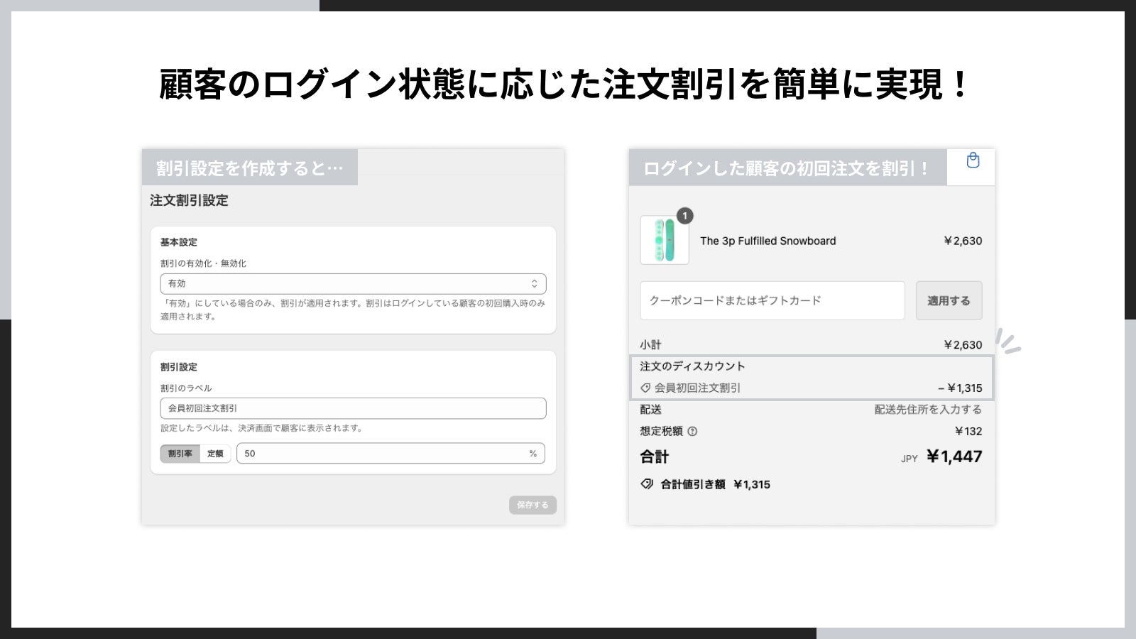 ■顧客のログイン状態に応じた注文割引を簡単に実現!