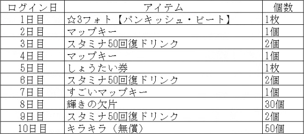 集めたイベントアイテムはマップキーの他にも、「3月ショップしょうたい券」や☆3フォト【パンキッシュ・ビート】など様々な豪華アイテムとも交換できます。