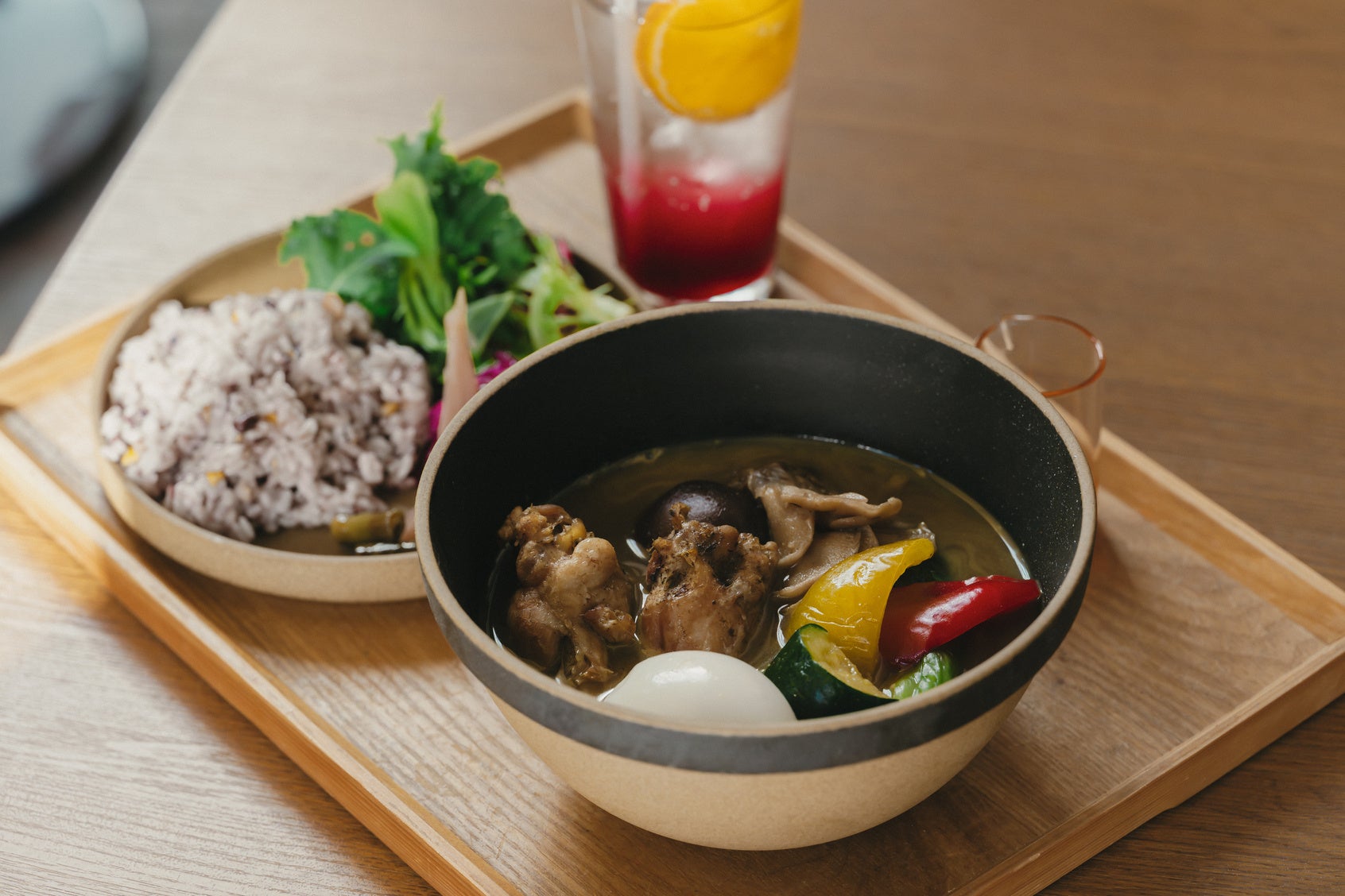 “サ飯”メニュー「ボーンベジブロス ととのい極カレー・赤紫蘇ソーダ」