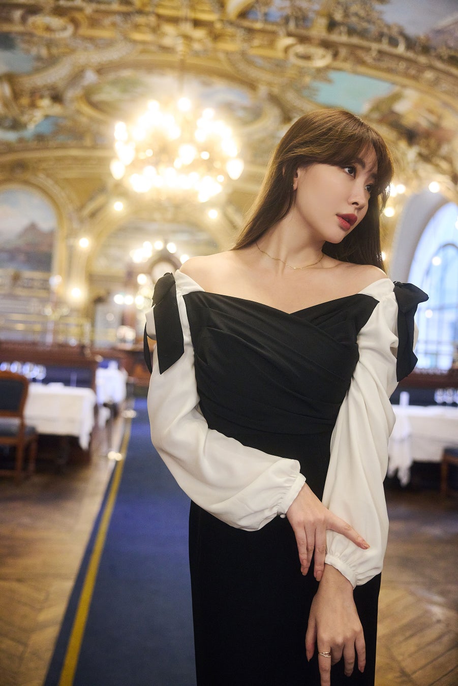 Faubourg Shoulder Ribbon Dress ¥25,000 tax in