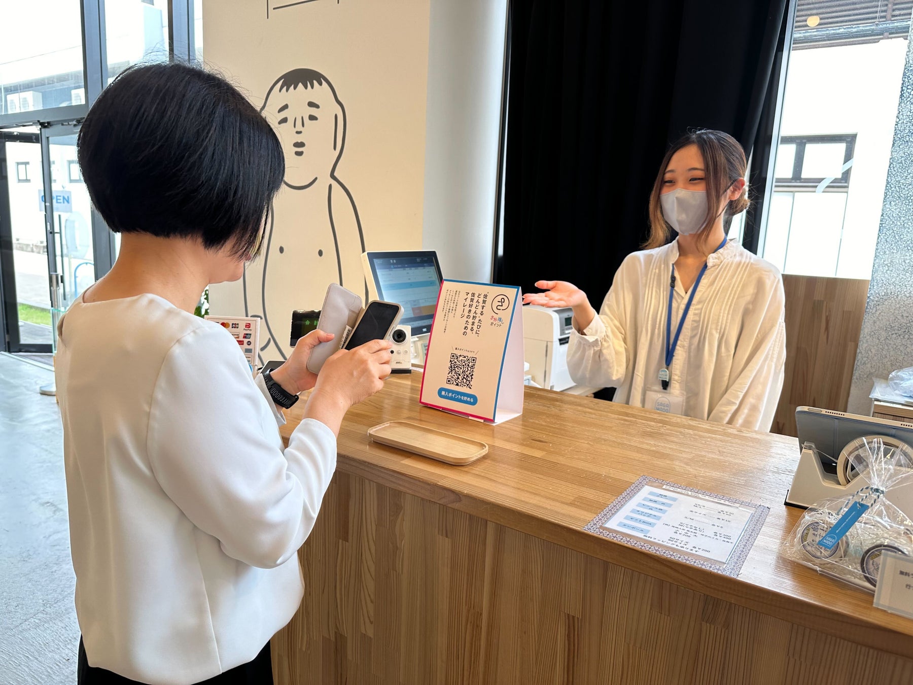 「来店ポイント」は、“チームさが推し”に来店して、店内の「来店QRコード」を読み込むと1ポイント、「購入ポイント」は、SAGAMADOおよびsagairで買い物してレジで提示される「購入QRコード」を読み込むと2ポイント、さらに、今年度からは、佐賀県外の方も楽しんでいただけるように、ECサイト「SAGAマルシェ」で買い物をし、購入商品に同梱されたQRコードを読み込むと、5ポイントを貯めることができます。