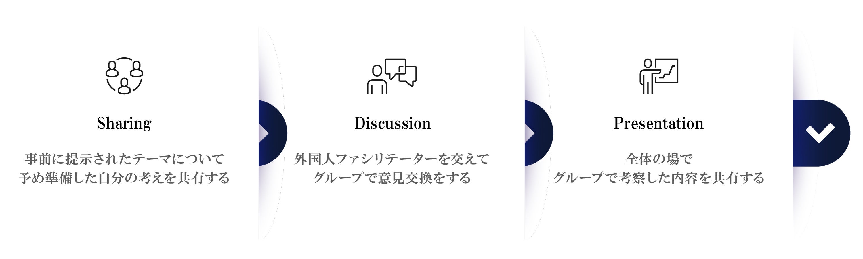※ 受講者は外国人パートナーとグループを組み、各種ワークに一緒に取り組みます(受講者2名に対して外国人パートナー1人の少人数制)
