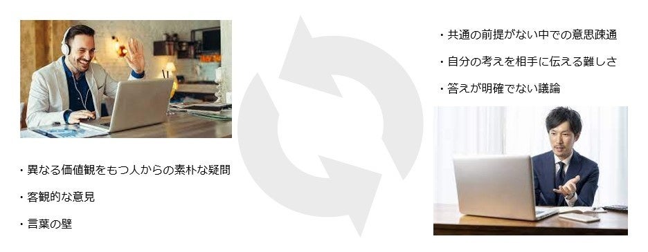 海外人材と一緒に共同ワークを実践することによってグローバルプロジェクトのノウハウを身に着けることができ、日本人と海外人材の意見・価値観の違いを実感するよいきっかけとなります。